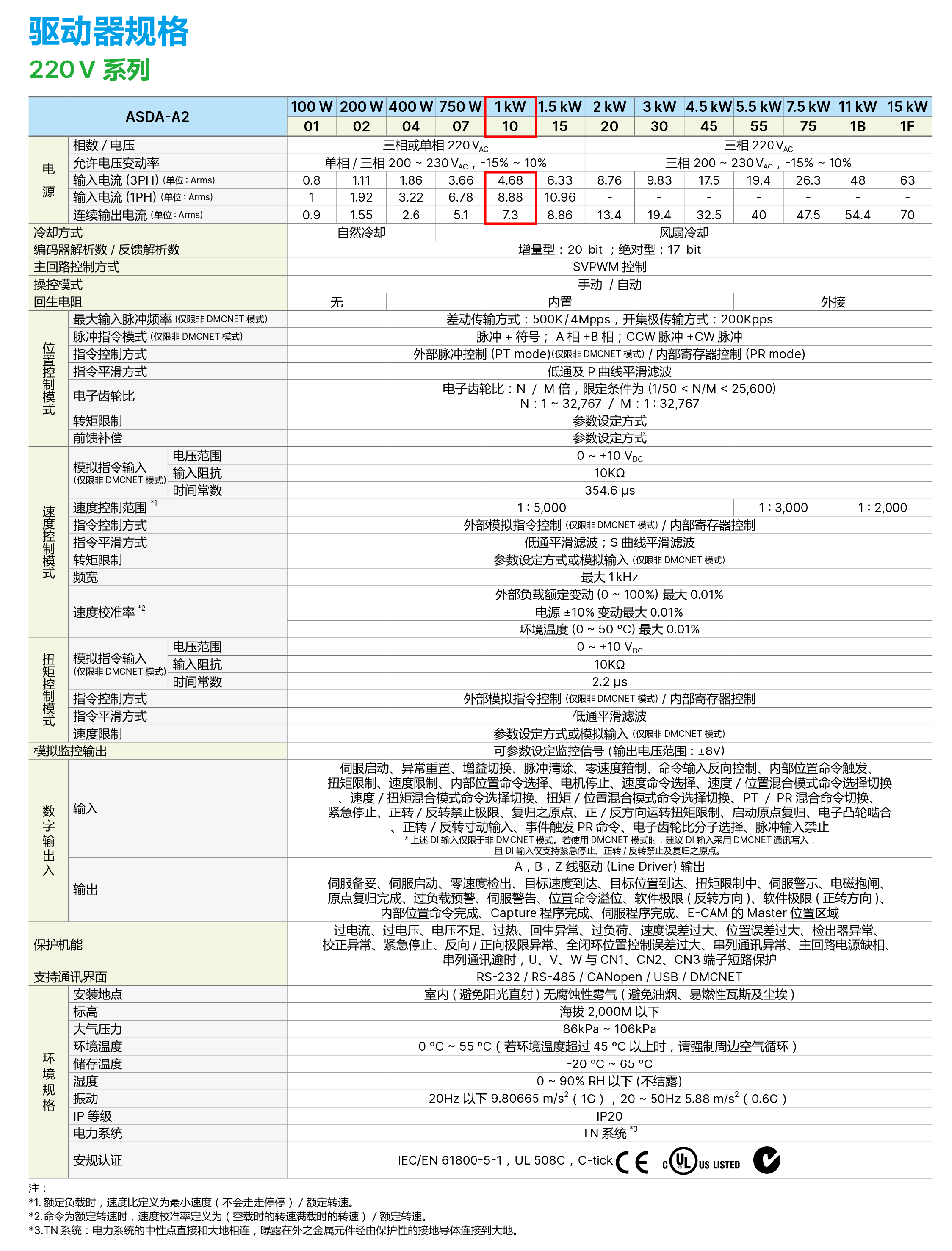 台达ASDA-A2系列1.5KW伺服驱动器ASD-A2-1521-L搭配伺服电机ECMA系列ECMA-E11315RS/ECMA-E11315SS