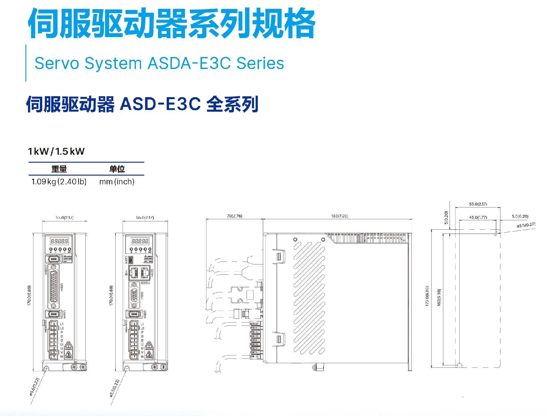 台达ASDA-E3C系列400W伺服驱动器ASD-E3C-0421-L/ASD-E3C-0421-E脉冲标准型伺服电机ECM-E3M-CM0604RSE/ECM-E3M-CM0604SSE