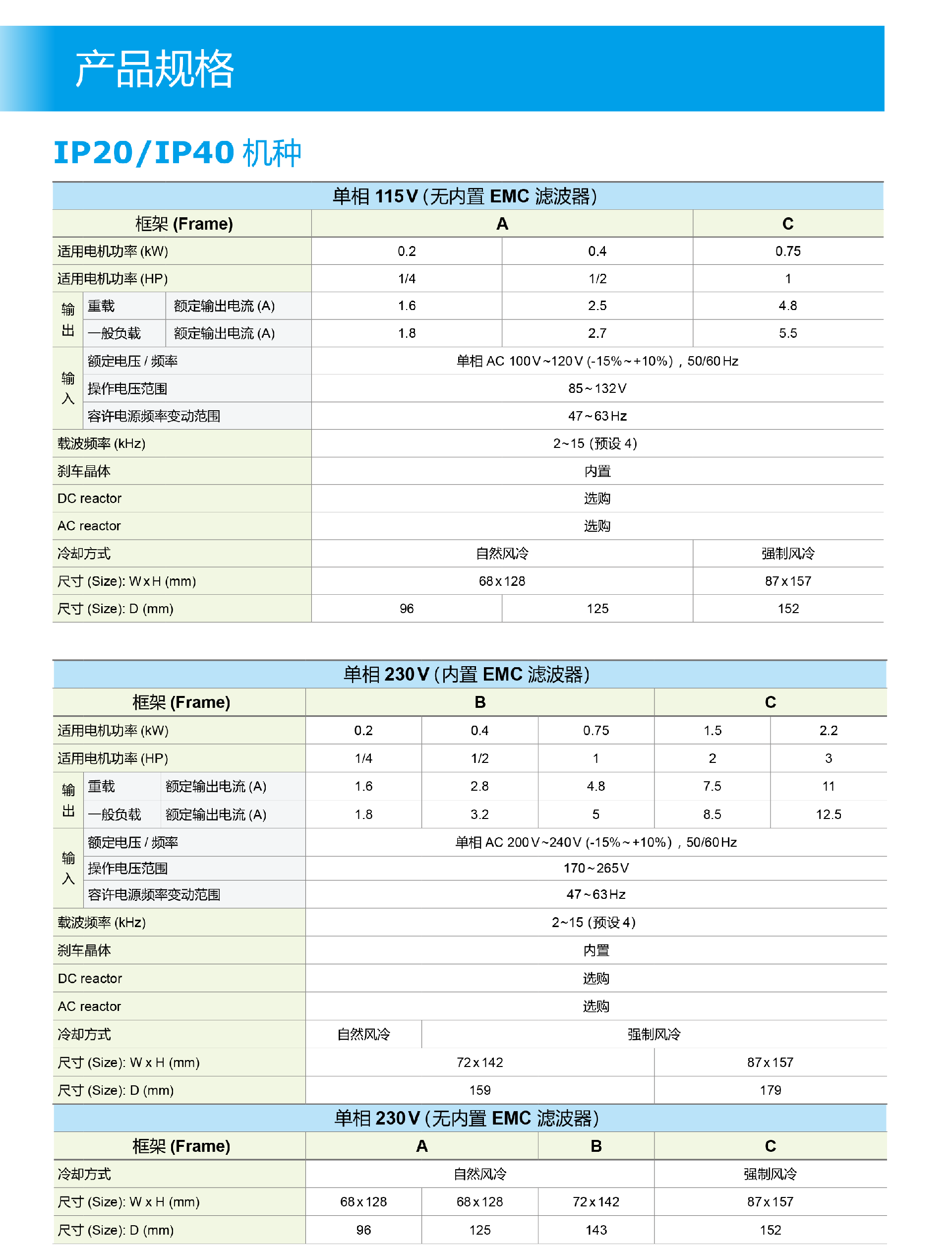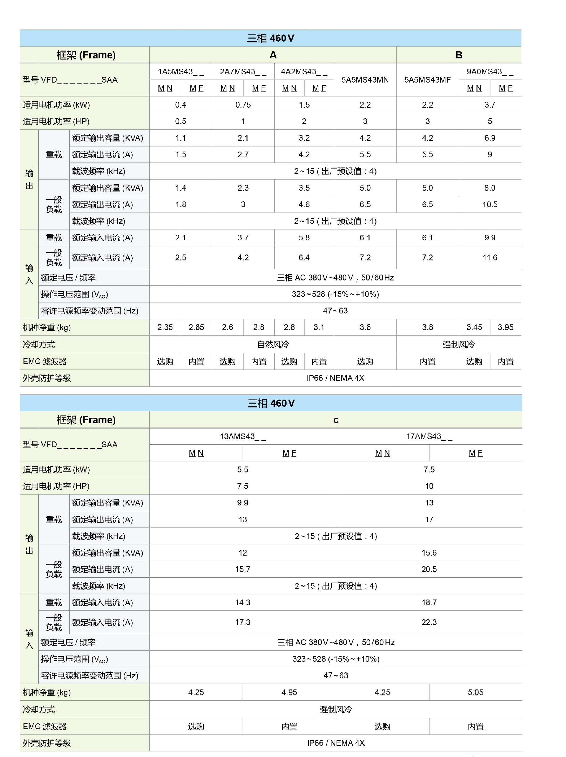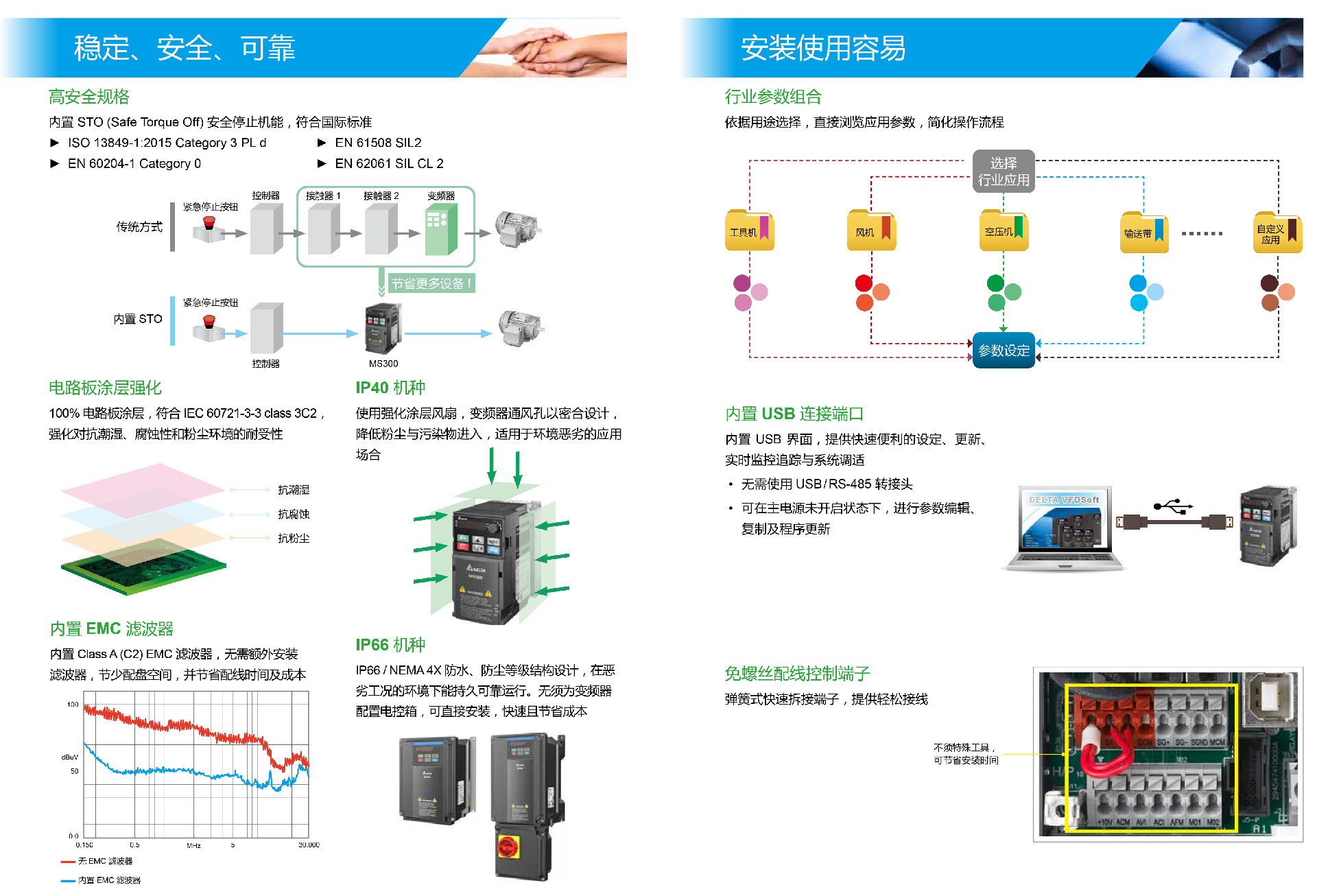 台达ME300系列精巧简易型矢量控制变频器VFD4A8ME21ANNAA / VFD2A8ME21ANNAA 内置 EMC 滤波器