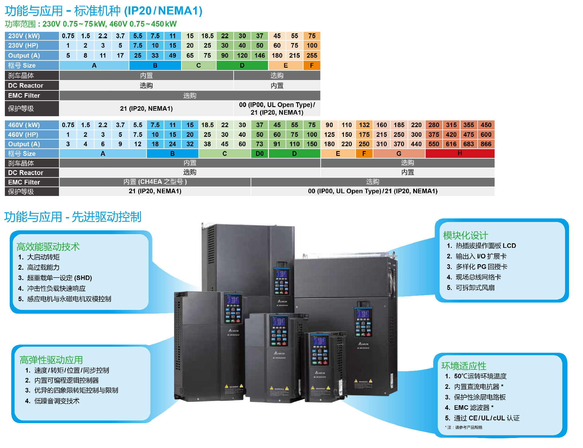 台达C2000 Plus/C2000系列泛用型矢量控制变频器VFD007C43A-21/VFD075C43A-21