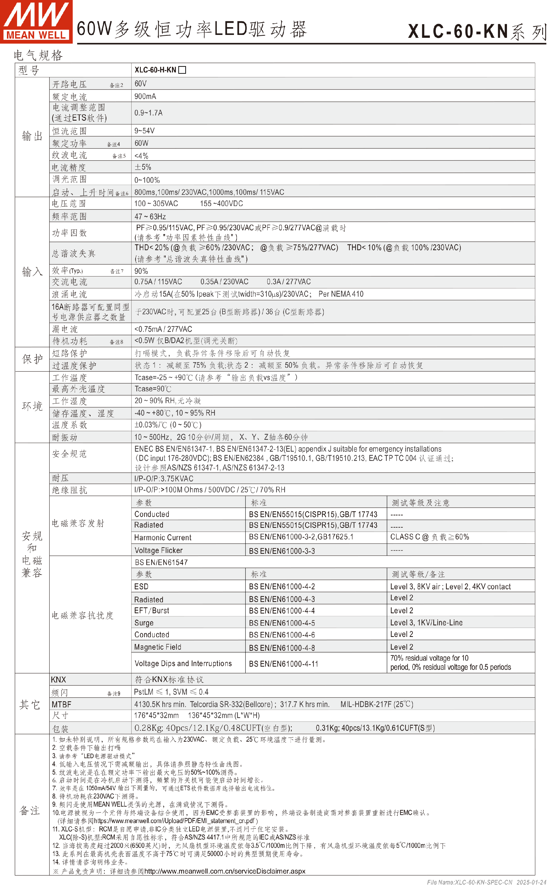 台湾明纬XLC-40-KN系列40W多级LED驱动器