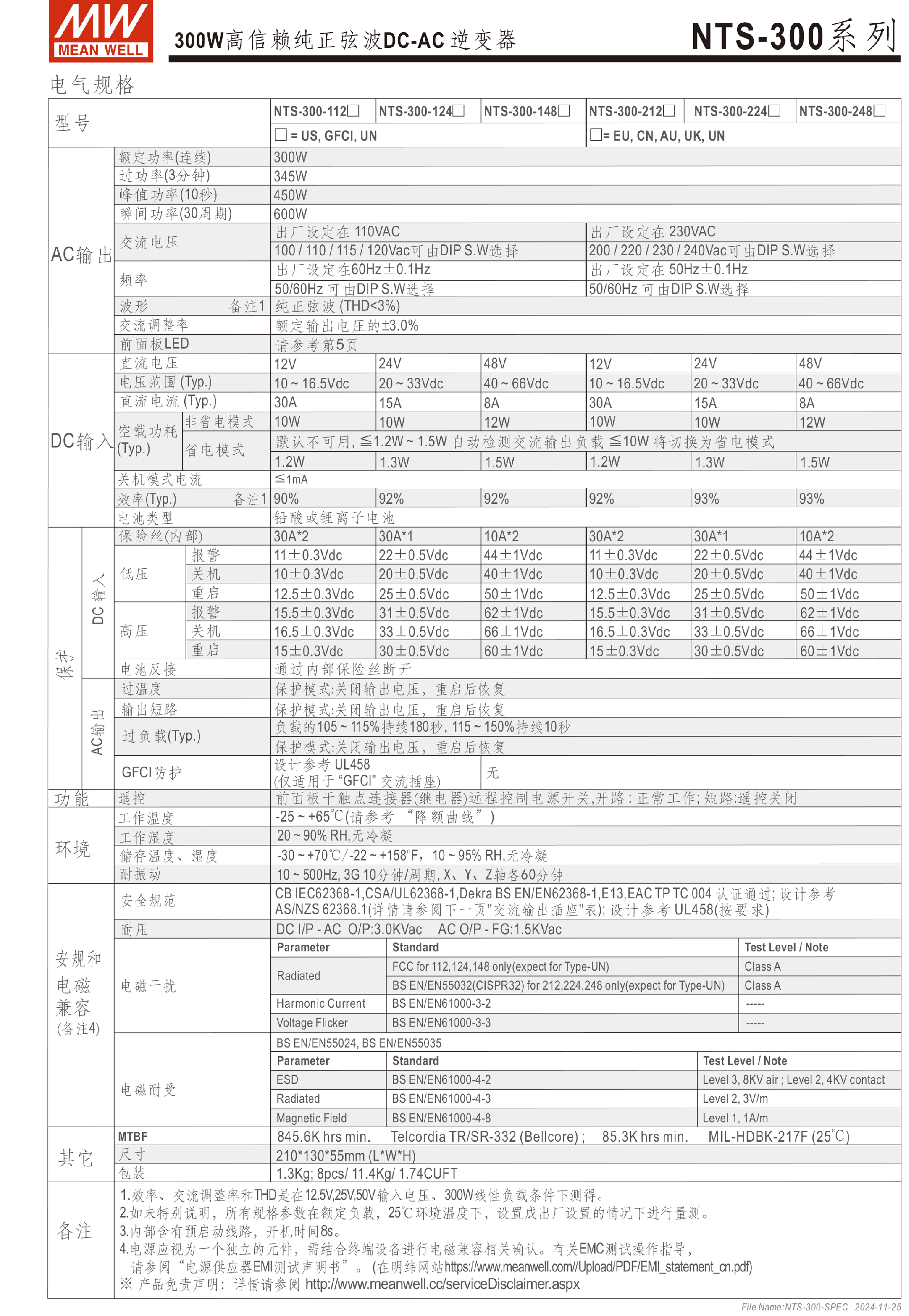 台湾明纬NTS-450系列DC-AC逆变器