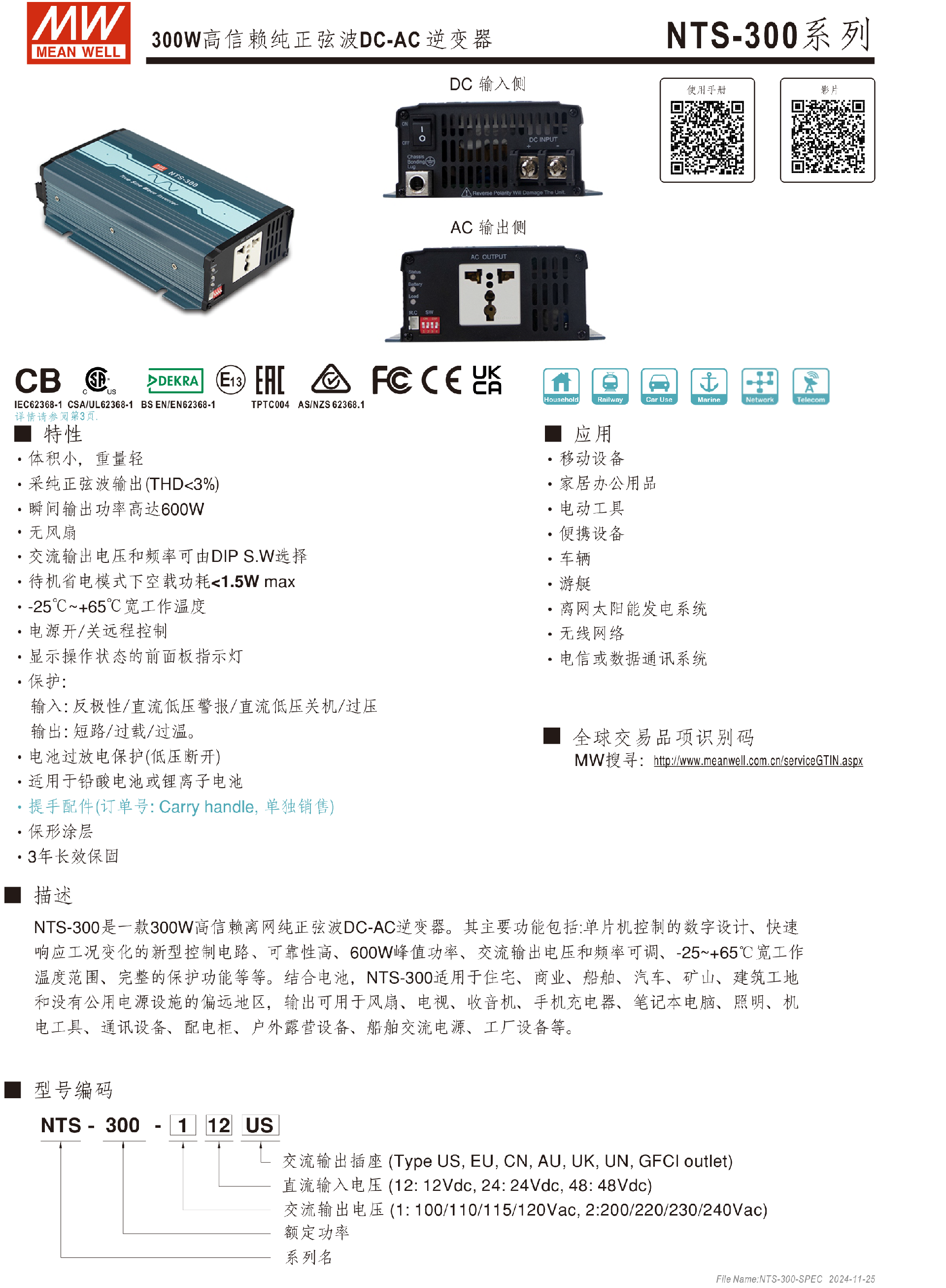 台湾明纬NTS-1700系列DC-AC逆变器