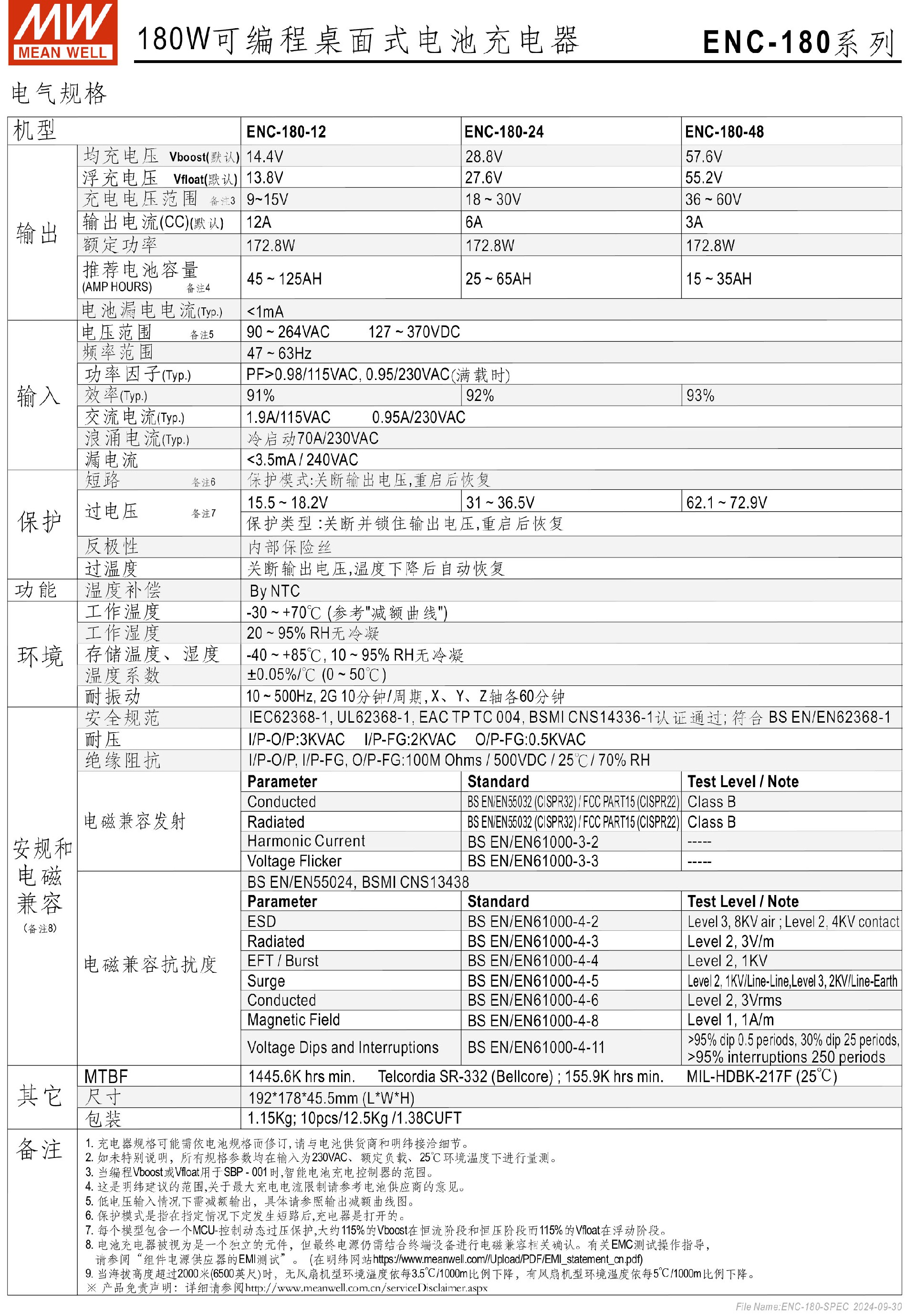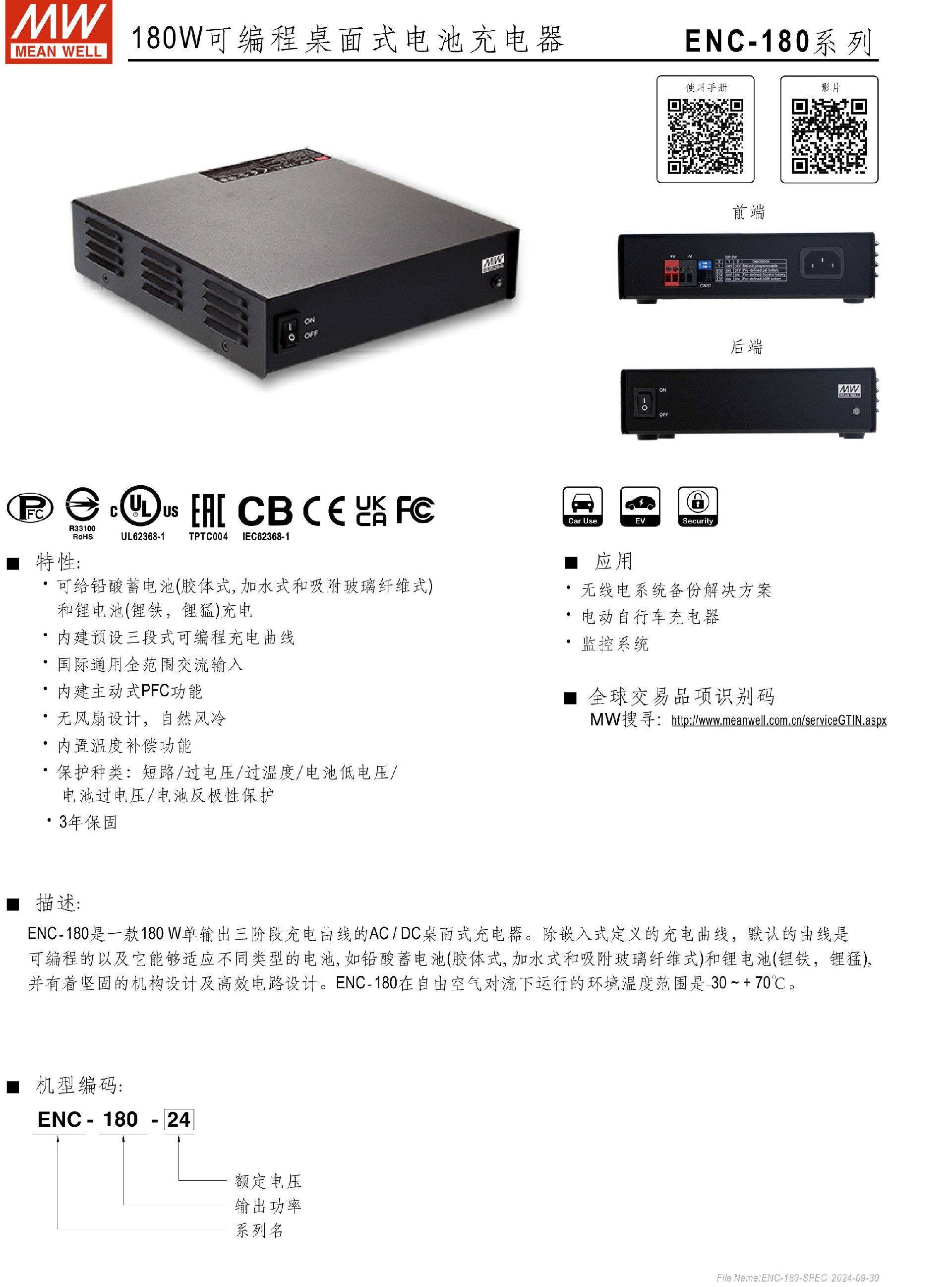 台湾明纬ENC-240系列可编程电池充电器