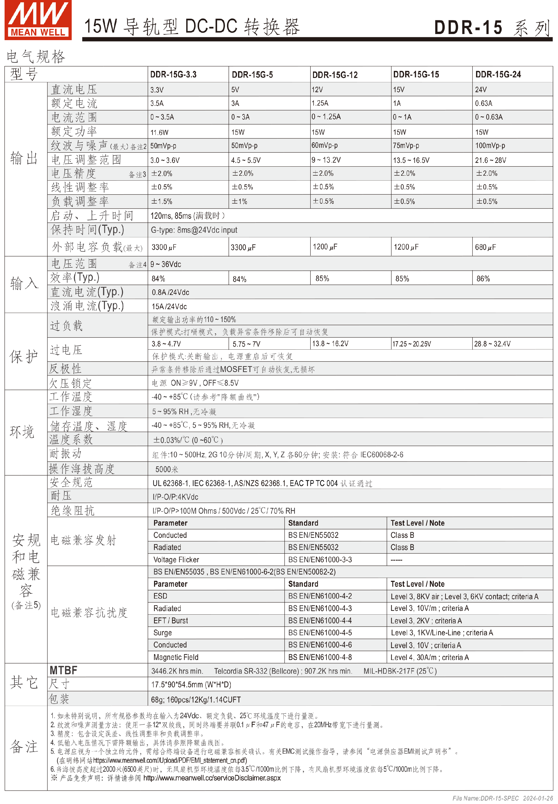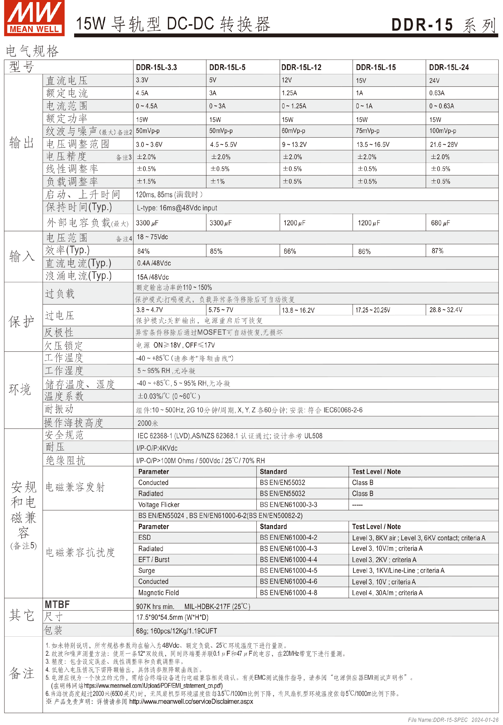 明纬电源DDR-120系列120W导轨型DC-DC转换器