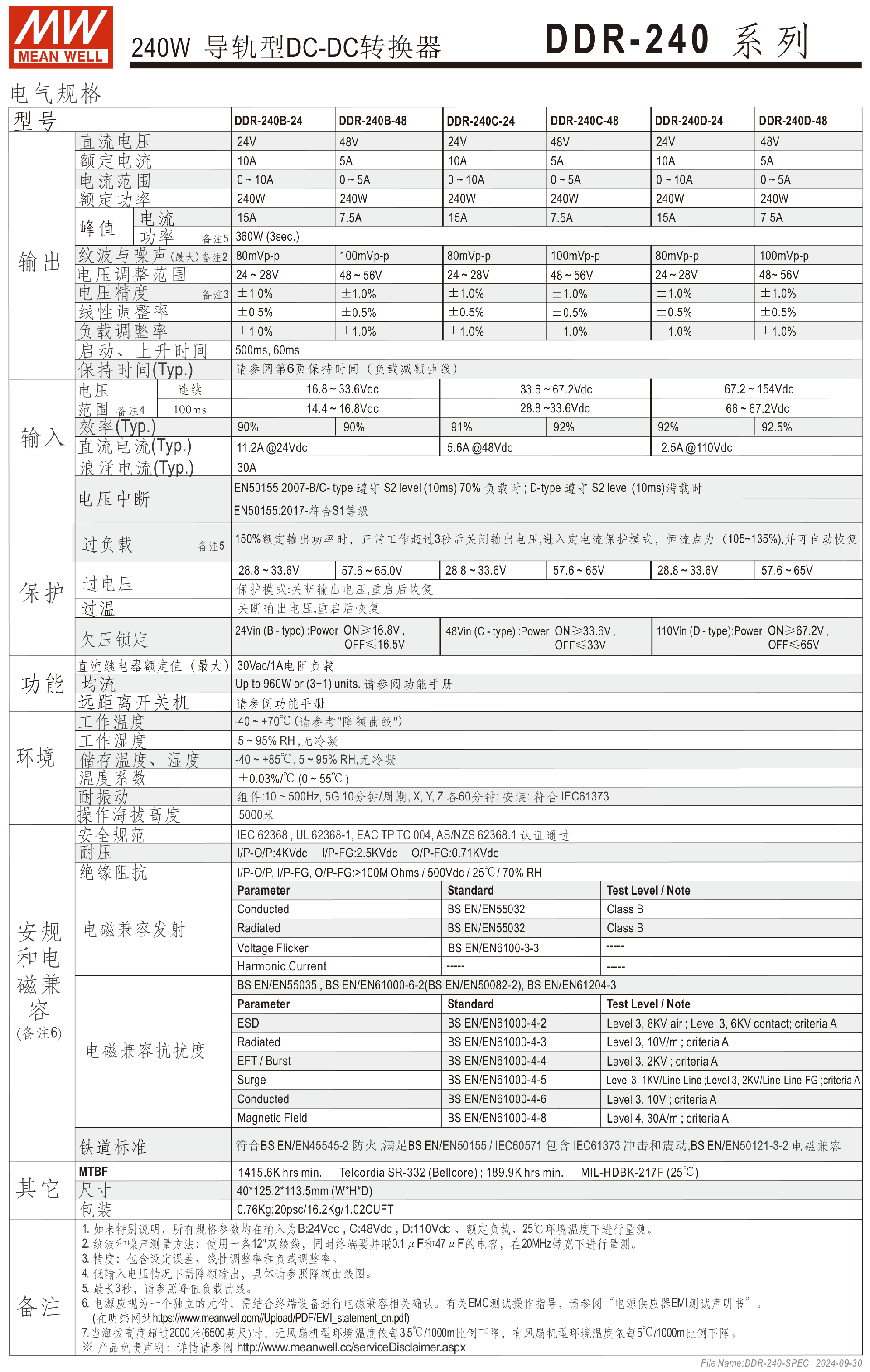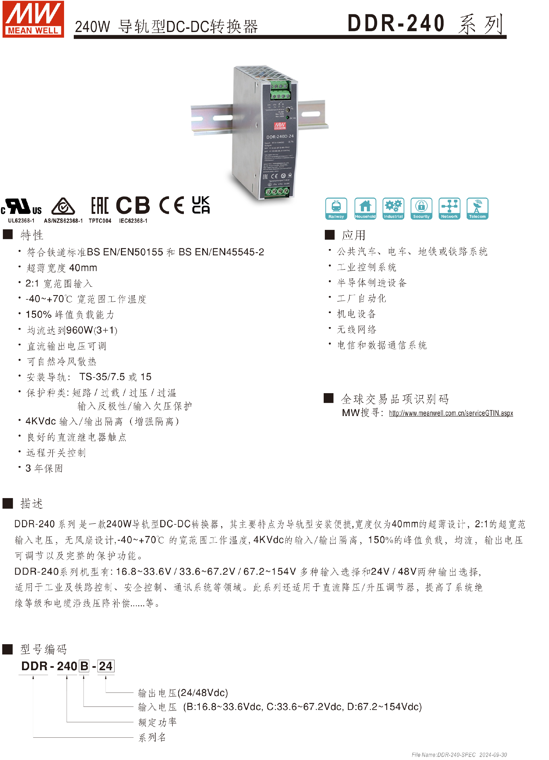 明纬电源DDR-120系列120W导轨型DC-DC转换器