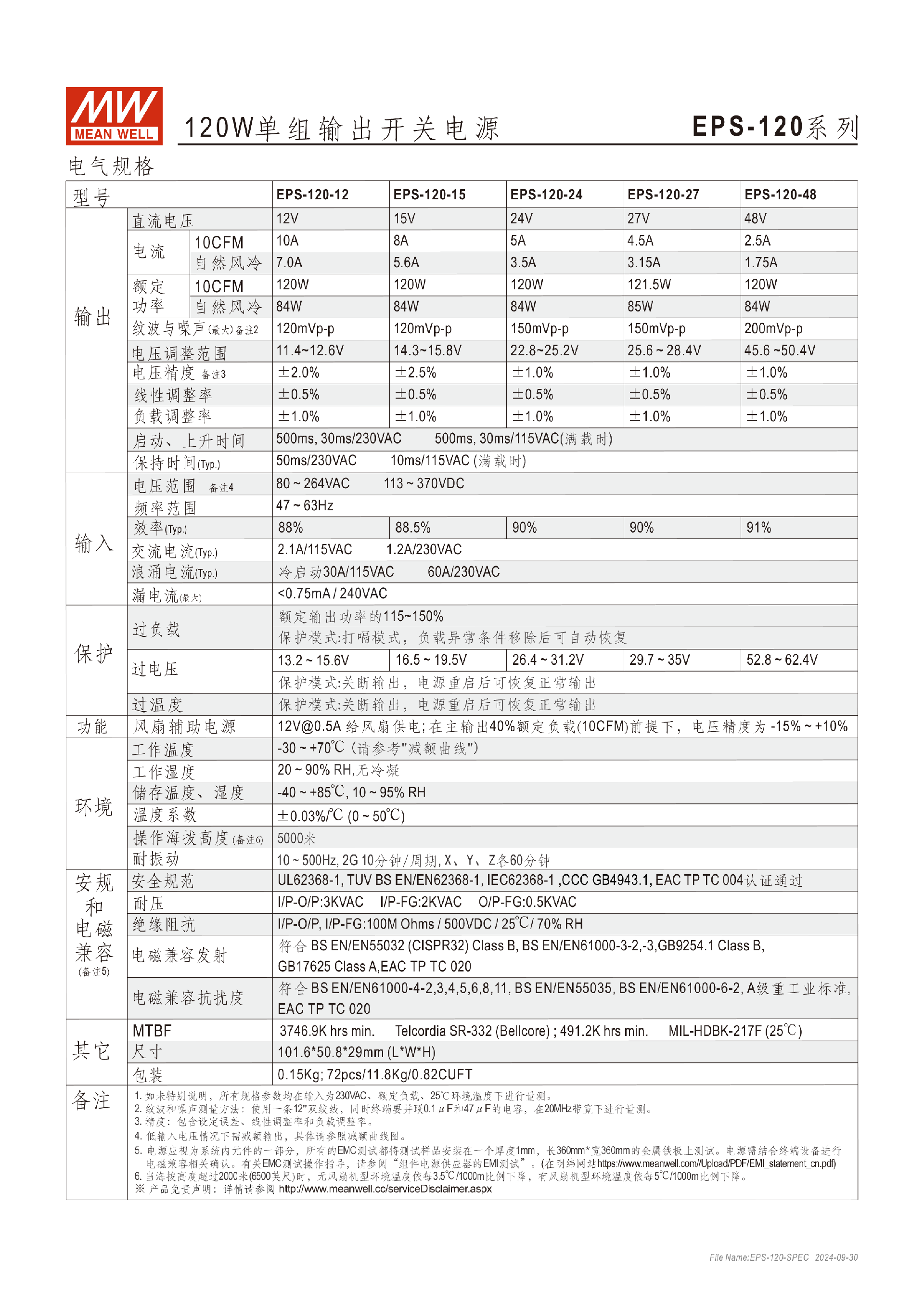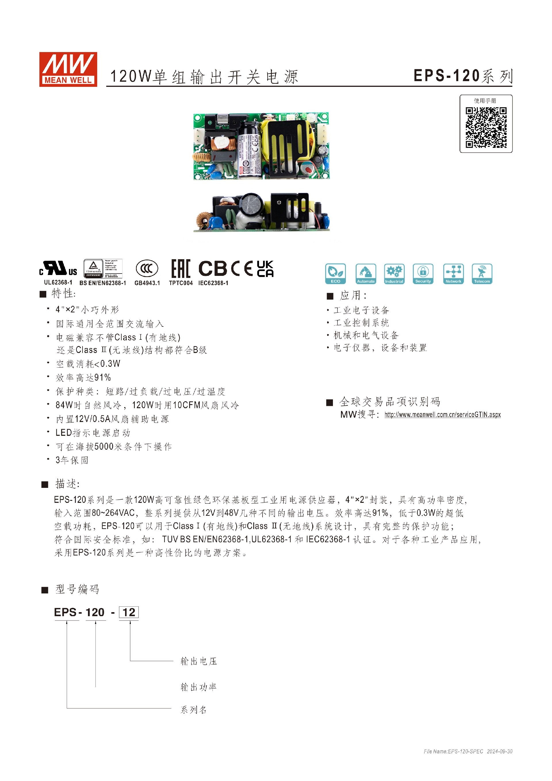 台湾明纬EPP-100系列100W单组输出开关电源