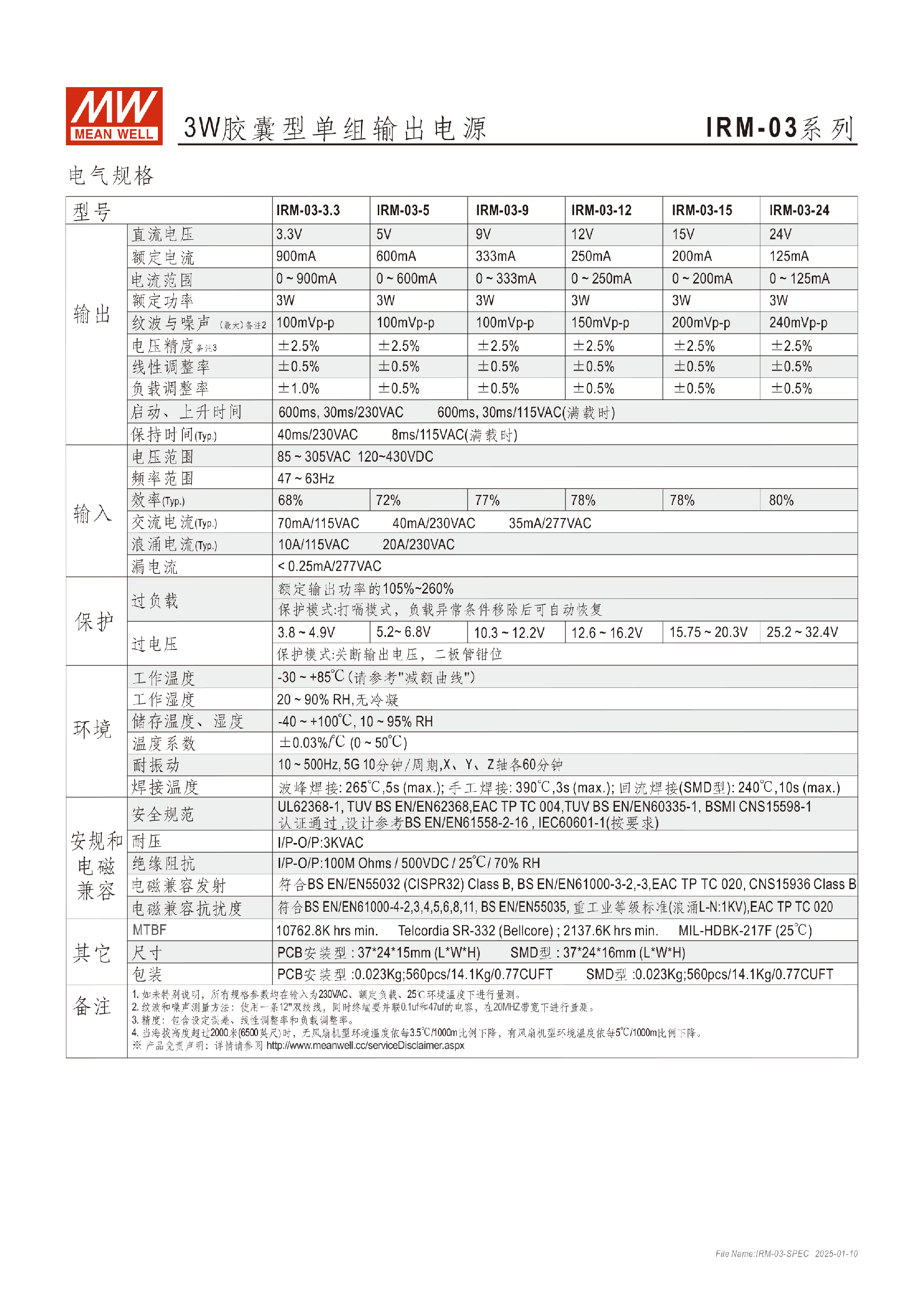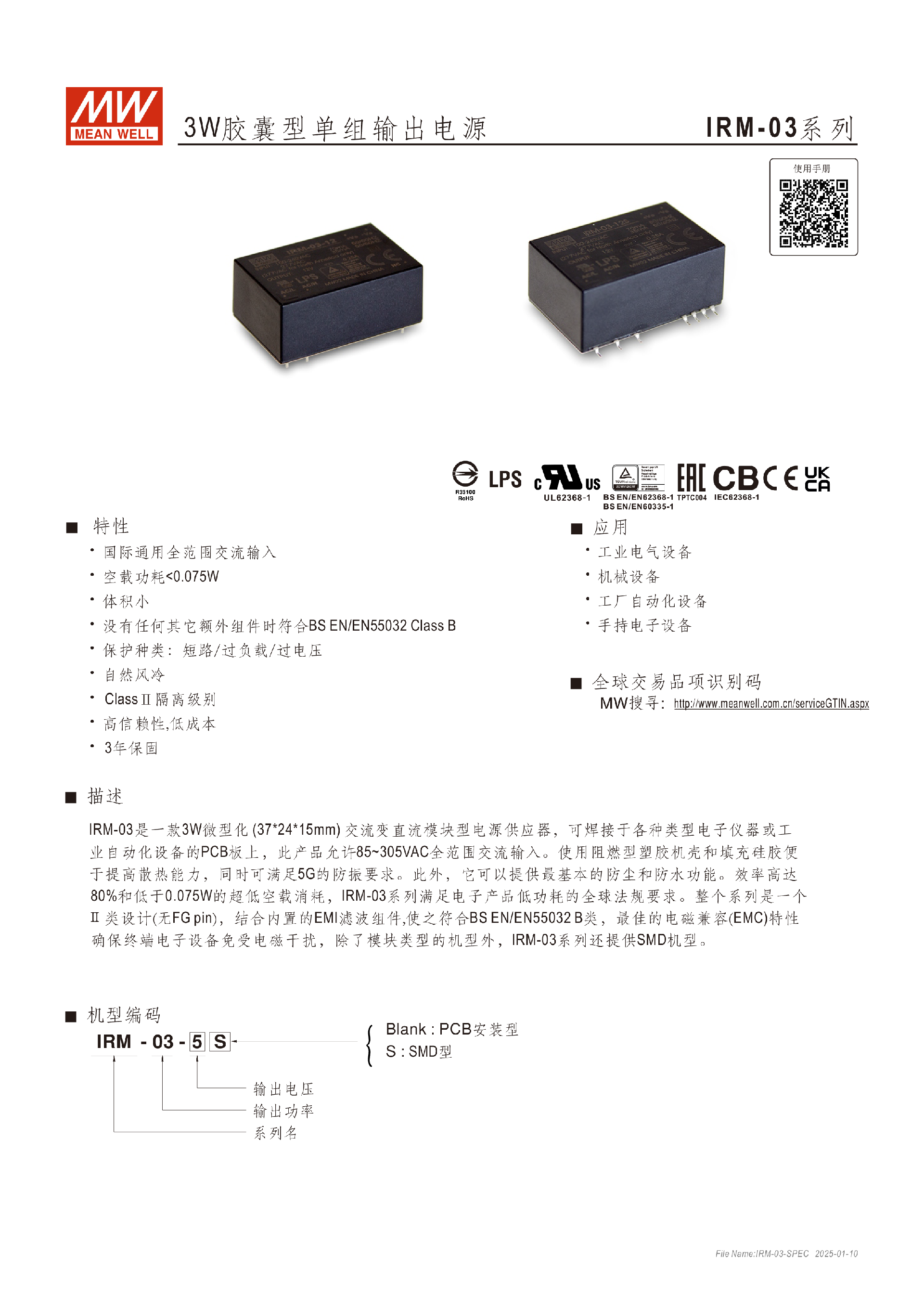 明纬IRM-10系列10W胶囊型电源