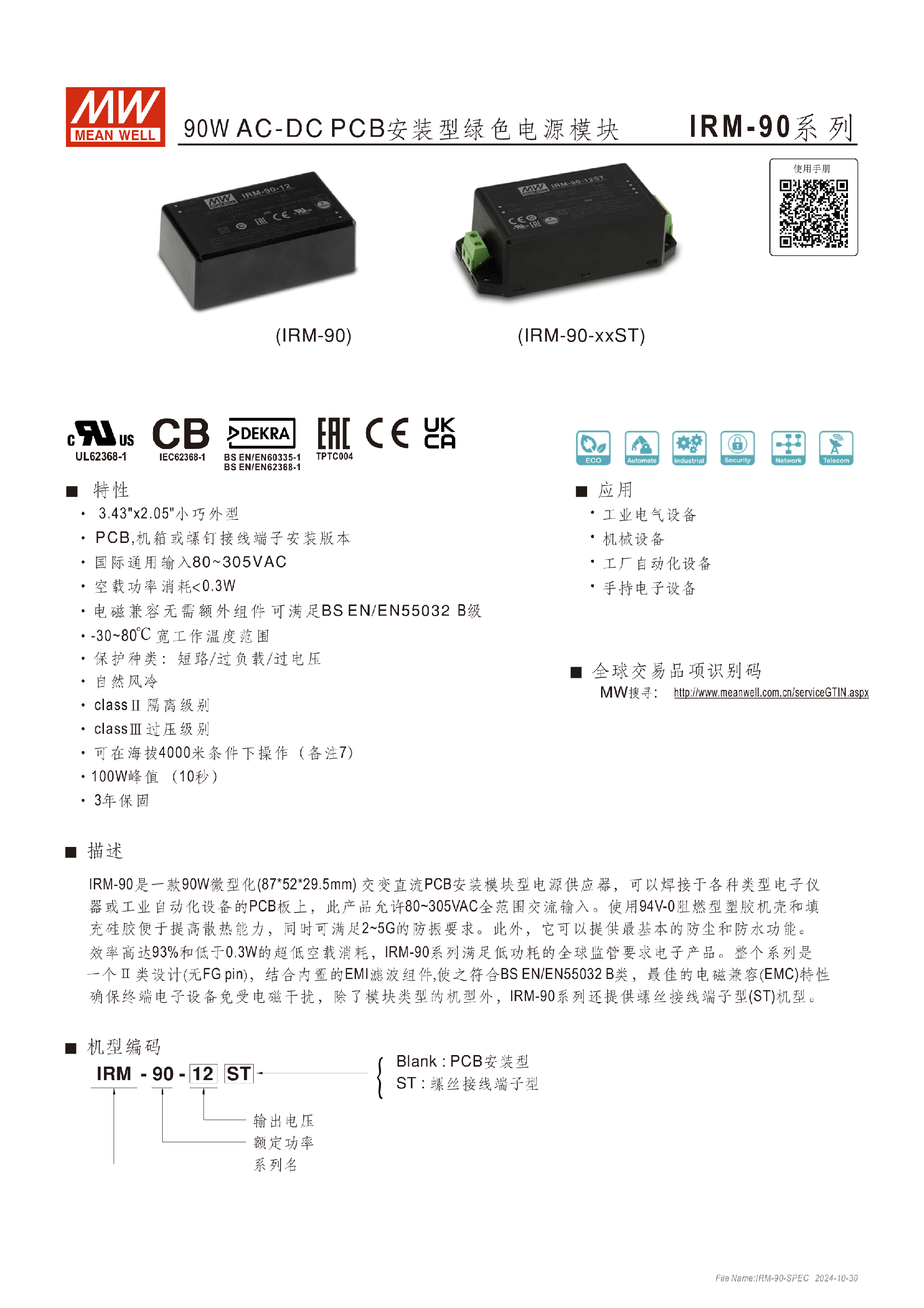 明纬IRM-15系列15W胶囊型电源