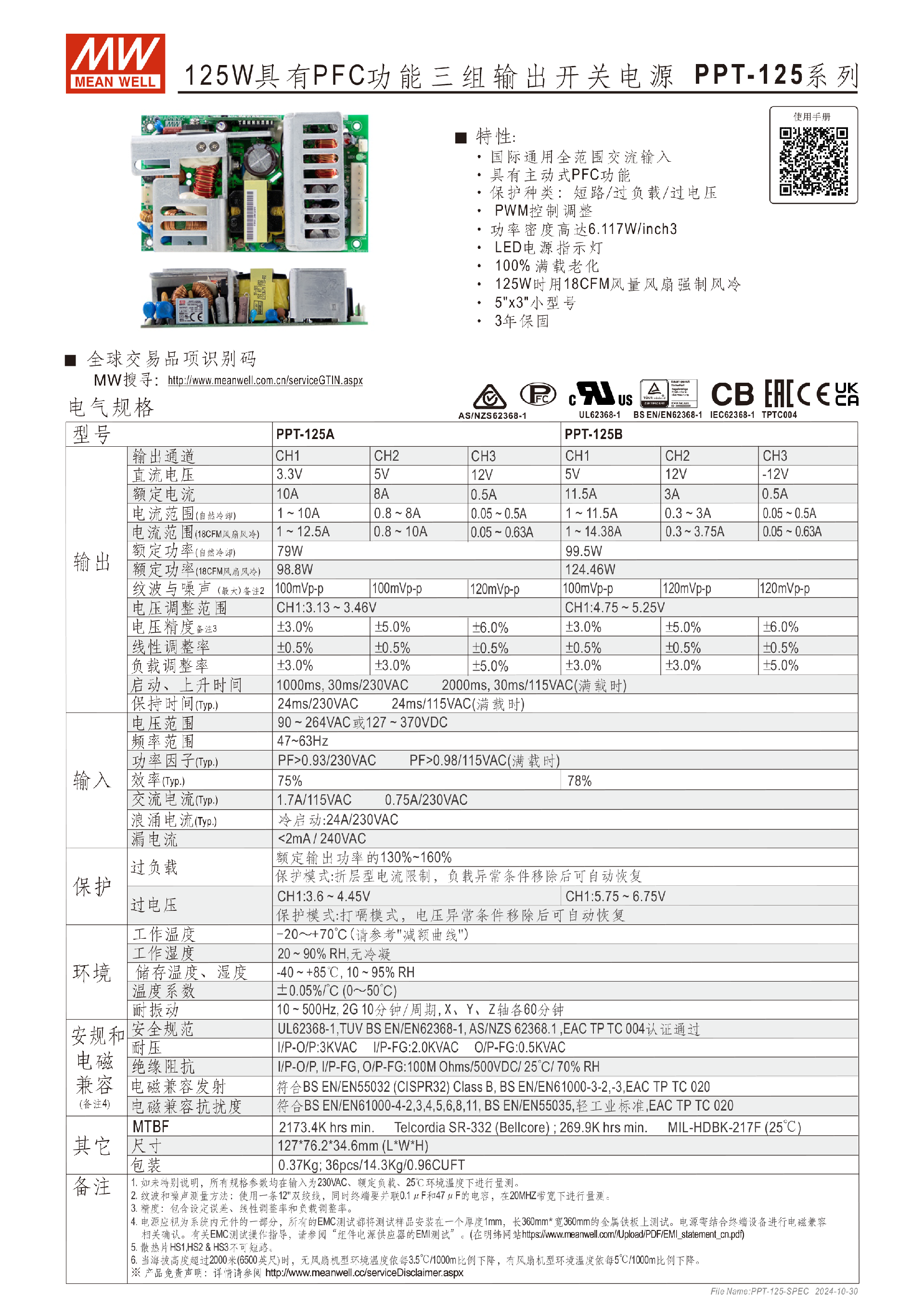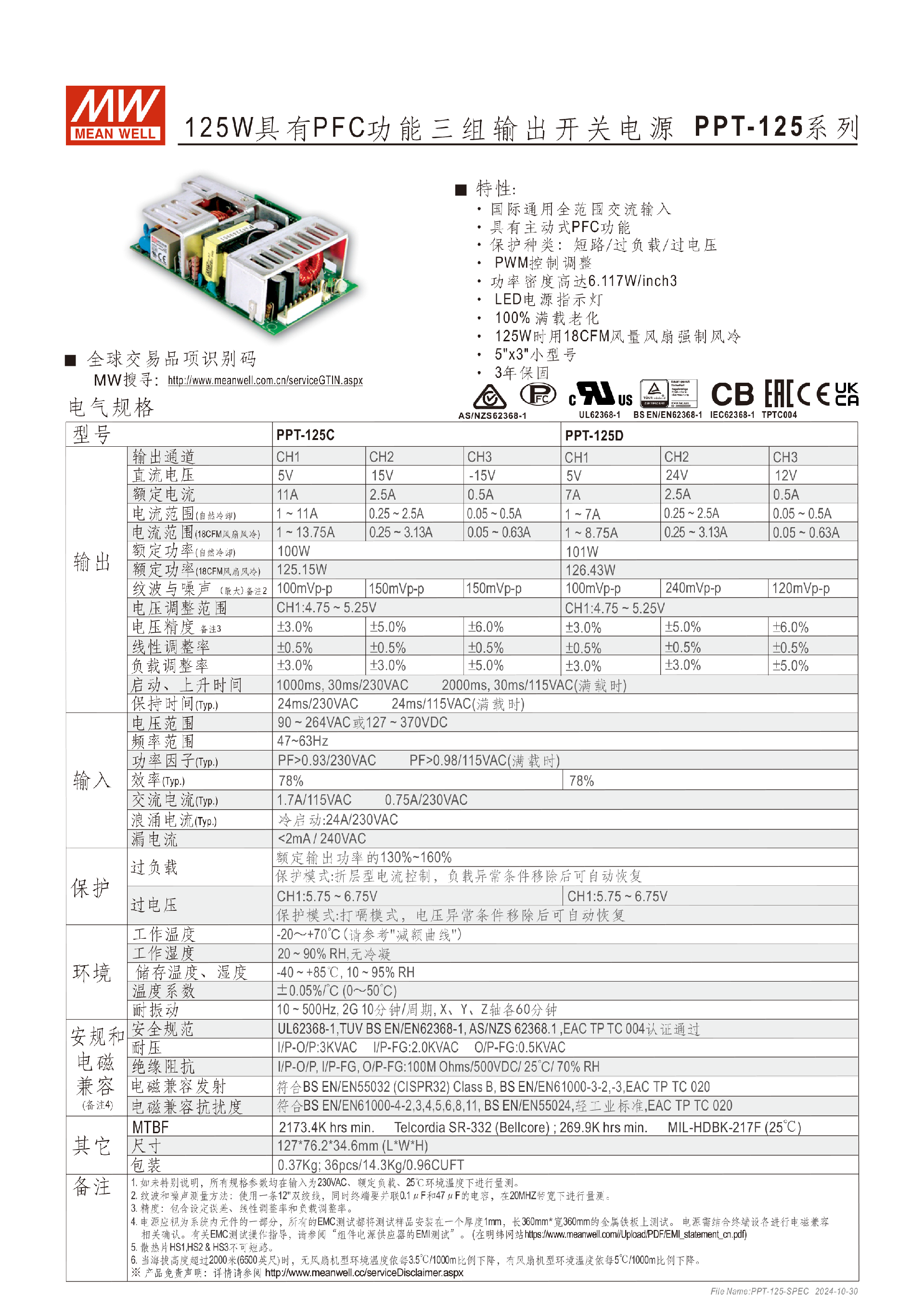明纬PID-250系列250W双组输出开关电源
