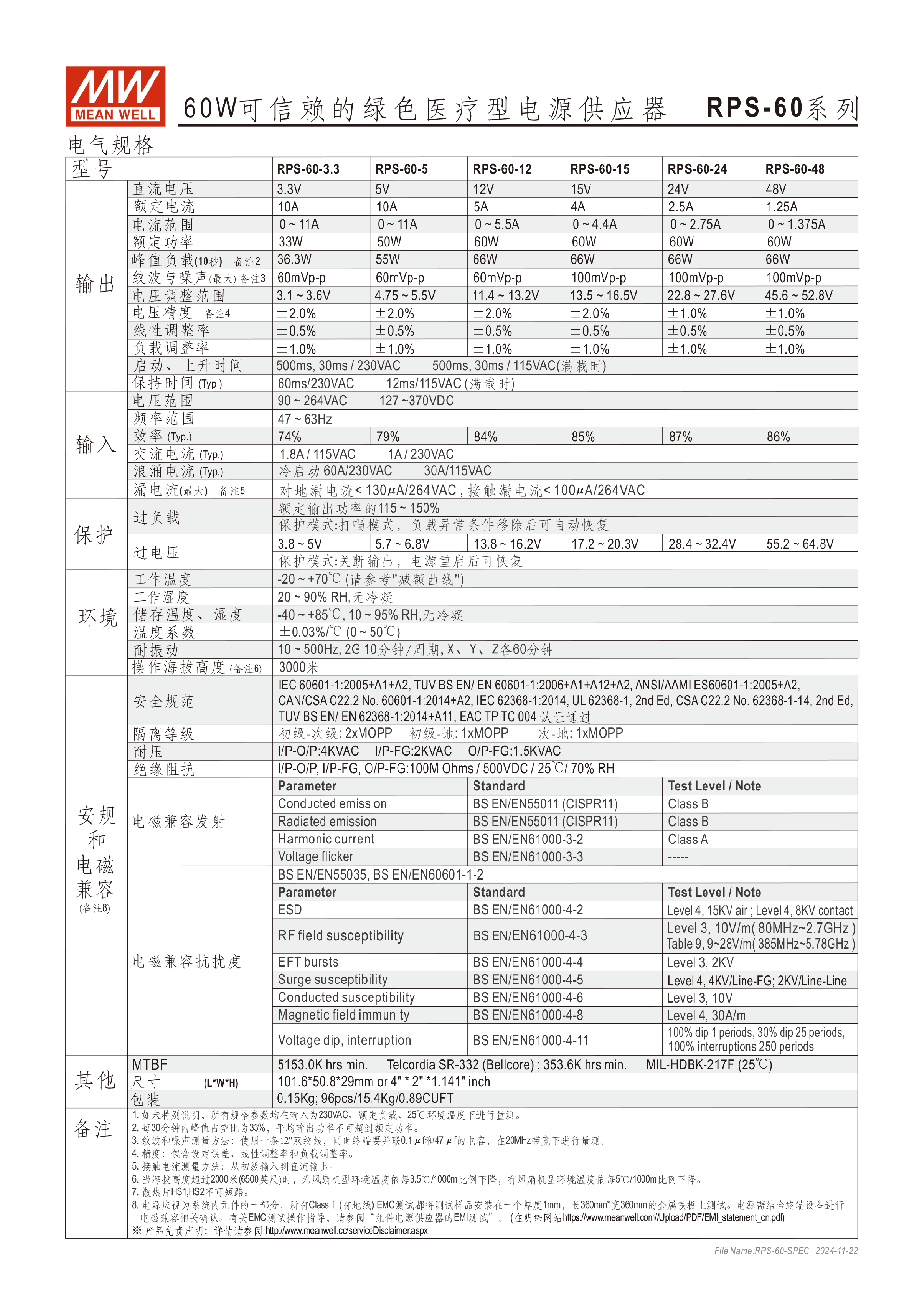 台湾明纬RPS-160系列160W医疗型电源供应器