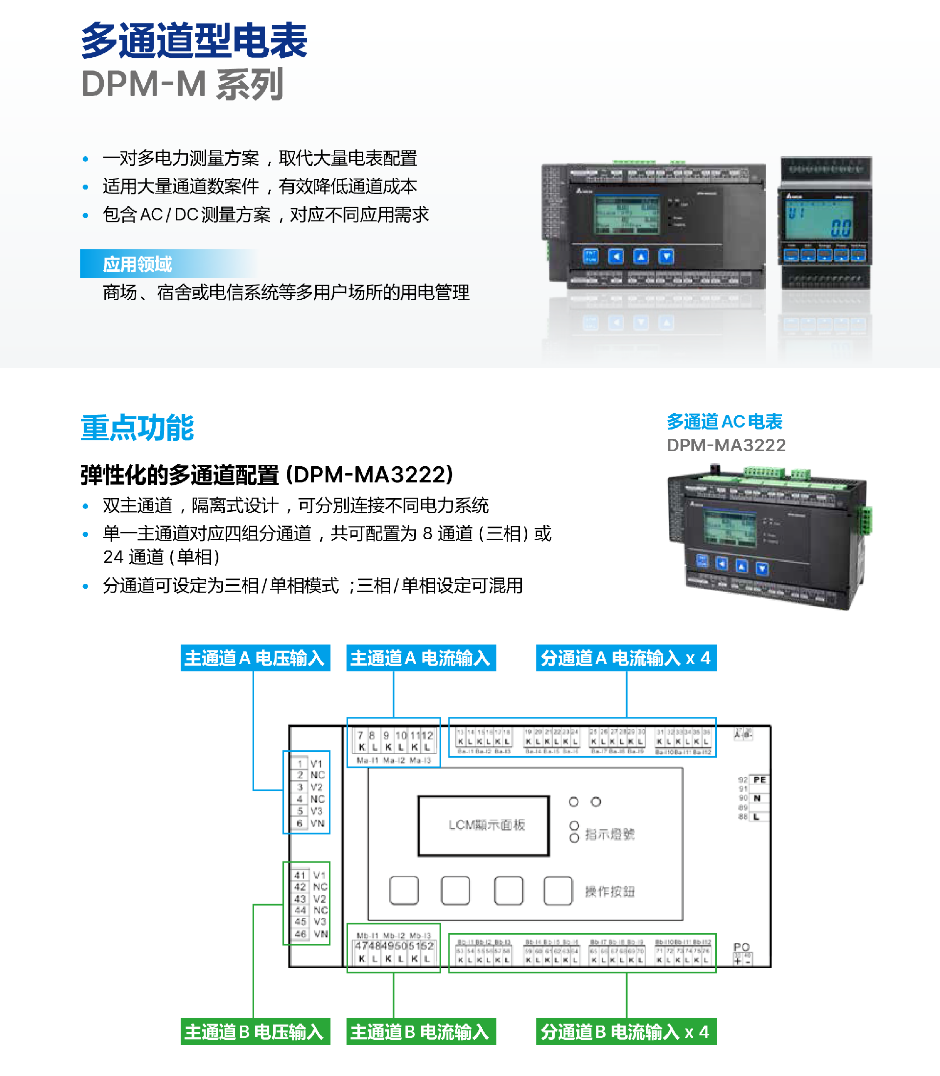 Delta台达DPM-D系列多功能集合式电表DPM-D532I导轨型电表DPM-D510自动接线修正