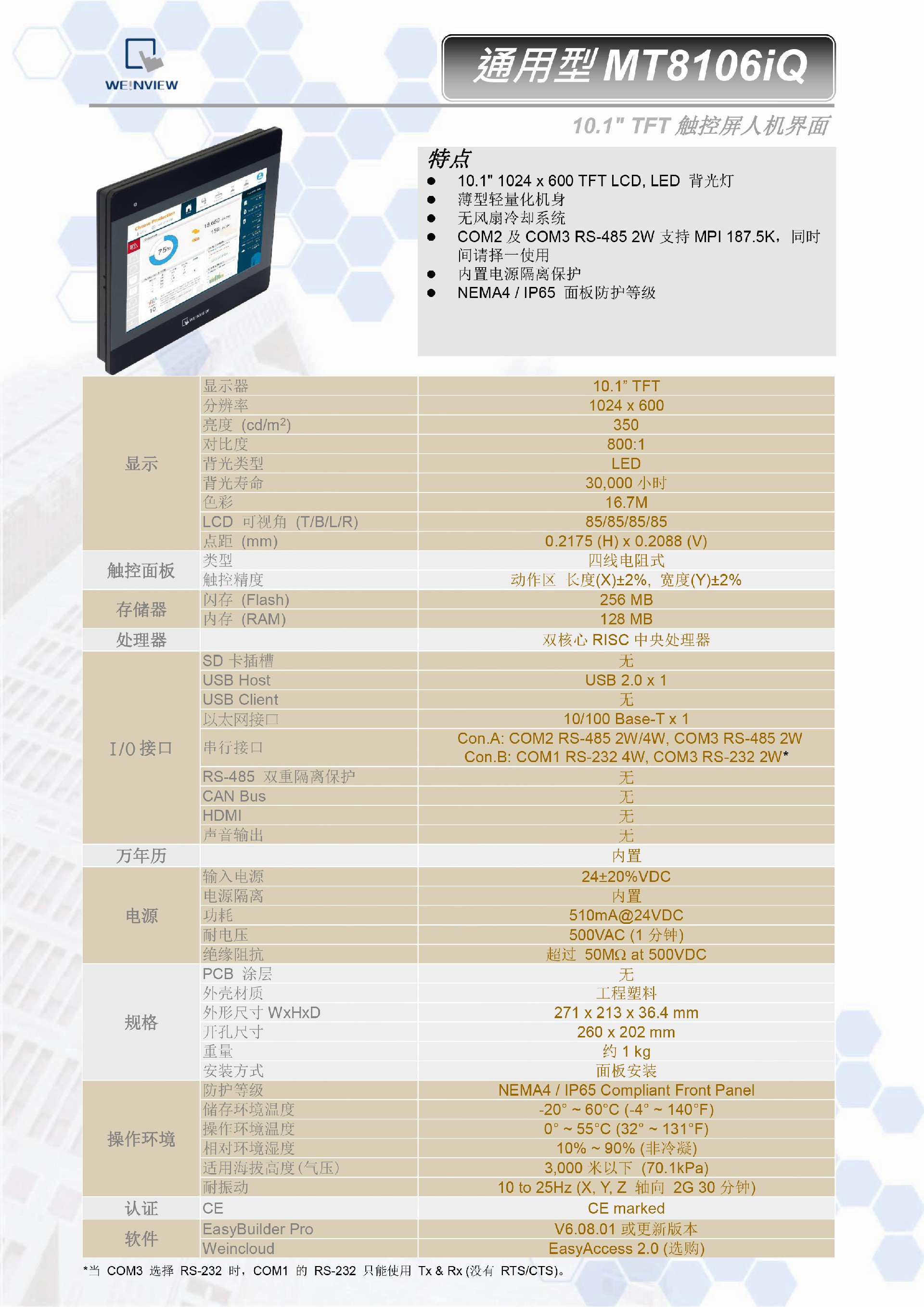 MT8106IP威纶通触摸屏10寸